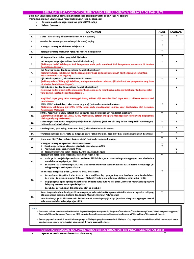 Pdf Senarai Semakan Dokumen Yang Perlu Dibawa Semasa Hari Pendaftaran Fauzy Fox Academia Edu
